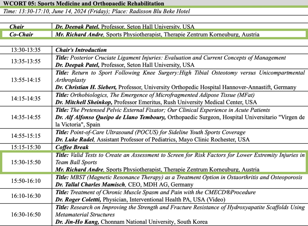 Unser leitender Physiotherapeut wird einen Vortrag zu einem seiner Spezialthemen beim 8th Annual World Congress of Orthopaedics (WCORT) in Budapest halten dürfen. Wir wünschen ihm viel Erfolg.