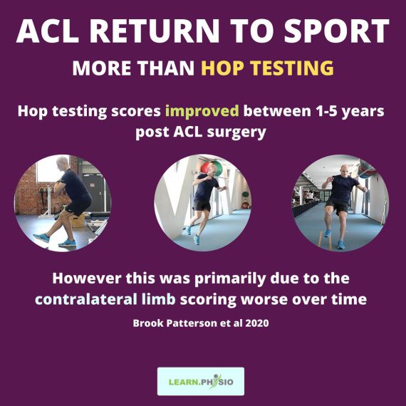 Schließlich wird dringend empfohlen, eine Reihe von zusätzlichen Tests zu den Hop-Tests zu verwenden und diese unter Müdigkeit durchzuführen, um eine bessere Vorstellung von der tatsächlichen Bereitschaft einer Person zu erhalten, wieder Sport zu treiben. Auch Patterson, et al. 2020 sind der Überzeugung, dass die Verbesserung des LSI einer Funktionstestbatterie zwischen und Jahren nach der Rekonstruktion des vorderen Kreuzbandes, hauptsächlich an einer Verschlechterung der Funktion der kontralateralen Extremitäten liegt.