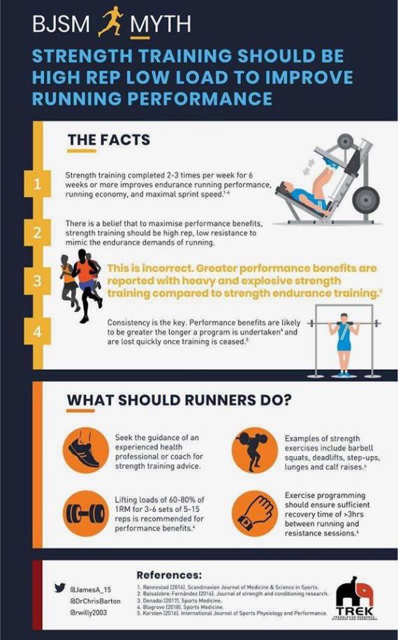 Es wurde berichtet, dass Krafttrainingsmaßnahmen mit einer Dauer von 6 bis 20 Wochen, die dem Trainingsprogramm eines Distanzläufers mit >6 Monaten Lauferfahrung hinzugefügt wurden, die Laufwökonomie um 2 bis 8% verbessern. Verbesserungen der Laufökonomie verbessern theoretisch die Ausdauerlaufleistung, indem sie dem Läufer ermöglichen, während des Trainings und des Rennens mit geringeren Sauerstoff- oder Energieverbrauch zu laufen. Diese Vorteile wurden bei Läufern aus der Freizeit durch… (Alexander et al., 2019).
