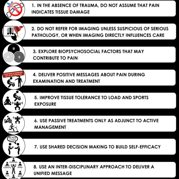 1. Wenn kein Trauma vorliegt, gehe nicht davon aus, dass Schmerzen auf eine Gewebeschädigung hinweisen.