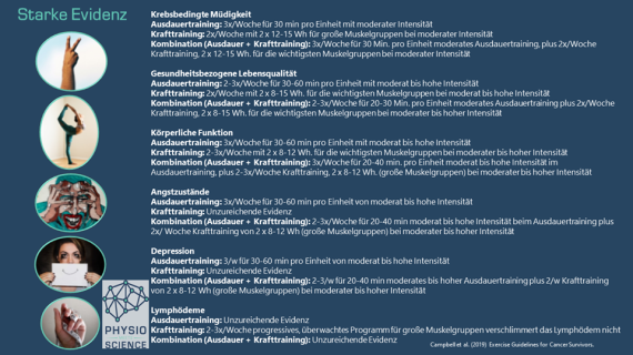 Im Folgenden ist hier die wesentliche Evidenz für eine Trainingstherapie bei Krebspatienten für verschiedene Outcomes dargestellt.